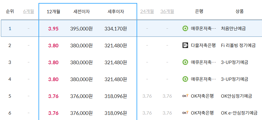 - 처음만나는예금 (애큐온저축은행): 3.95%