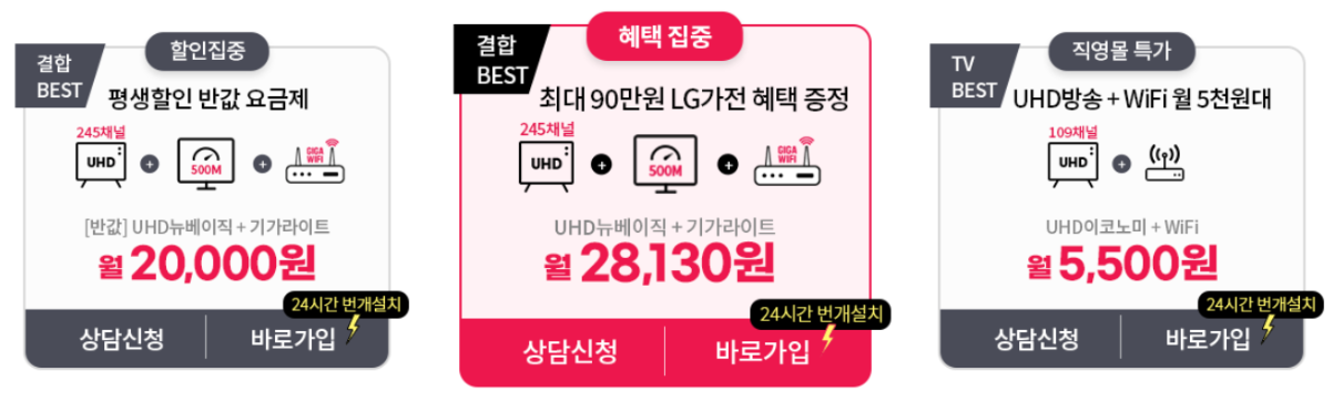 이외에도 헬로모바일은 업계 최초 반값 결합 요금제를 통해 인터넷 결합 상품 할인 혜택을 제공하고 있습니다. 인터넷 결합 상품은 알뜰폰 시장에서는 찾아보기 어려운 상품이라 더욱 반갑습니다. 인터넷 월정액 비용 절감과 사은품 혜택이 있으니 홈페이지를 통해 확인해보시면 좋겠습니다.
