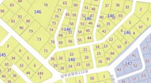 - 정보 확인: 지적도, 지목, 면적, 개별공시지가 표시